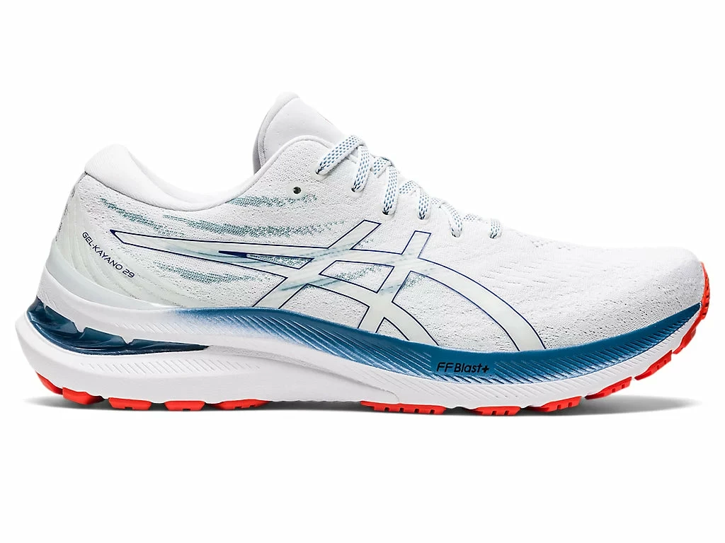 The GEL-KAYANO® 29 shoe creates a stable running experience and a more responsive feel underfoot. Featuring a low-profile external heel counter, this piece comfortably cradles your foot with advanced rearfoot support. We also updated the midsole with FF BLAST™ PLUS cushioning. This helps keep the shoe lightweight while creating a more energized rebound in each step. A LITETRUSS™ stability feature is placed on the midsole’s inside angle. It’s designed to help keep your foot from rolling too far inward during your stride.