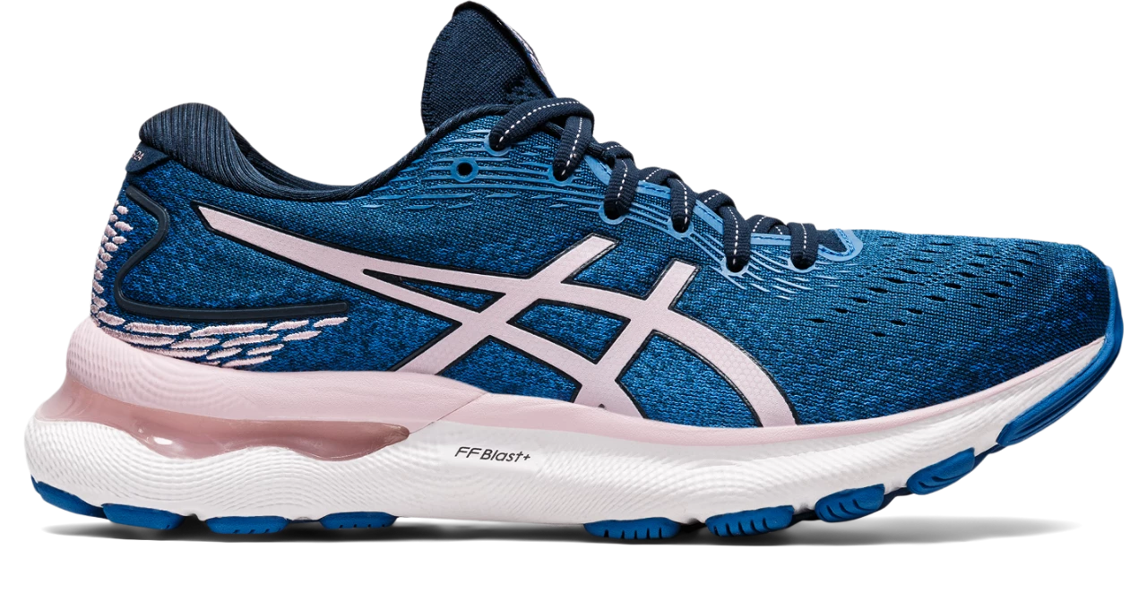 The GEL-NIMBUS® 24 shoe offers advanced impact protection for your distance training. Creating a softer landing in every step, this shoe is also approx. 10g lighter than the previous version. The upper’s soft engineered mesh and flexible midfoot panel make these shoes more comfortable during long runs. By moving seamlessly with your foot, they help your stride feel smoother in every step. FF BLAST™ Plus cushioning keeps the shoe lightweight while increasing shock absorption in each step. Featuring more responsive toe-off, these shoes also create a more comfortable feeling underfoot.